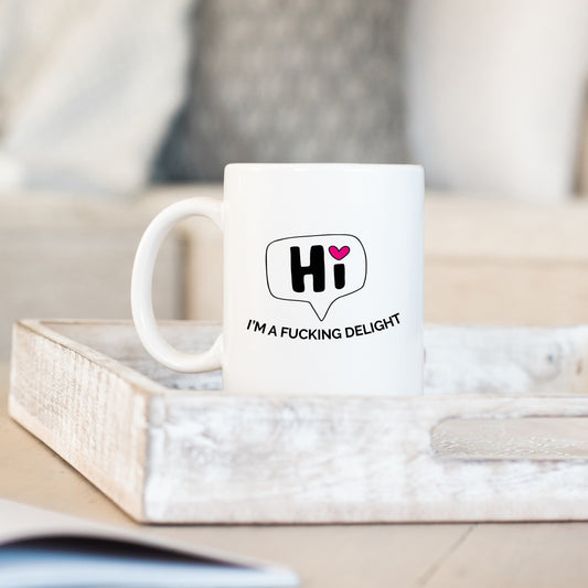 Hi I'm A Fucking Delight, Funny Rude Sarcastic Joke Gift, Personalised Mug
