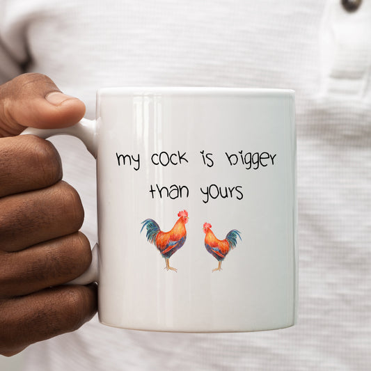 My Cock is Bigger Than Yours, Funny Rude Cockerel Joke Gift for Him, Personalised Mug