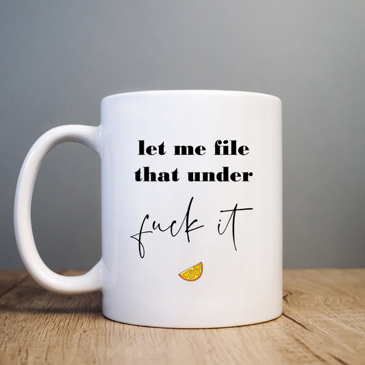 Let Me File That Under Fuck It Mug, Funny Hilarious Offensive Rude Personalised Gift Cup