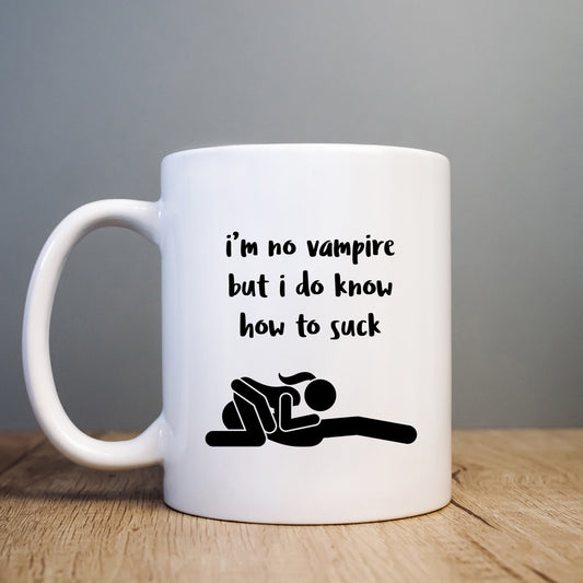 I'm No Vampire But I Do Know How To Suck Mug, Funny Sexual Offensive Hilarious Rude Personalised Gift Cup