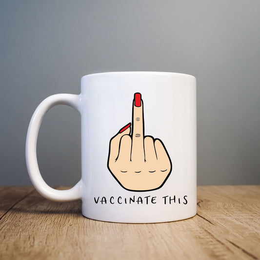 Vaccinate This, Middle Finger, Rude Gesture, Clear Design, Funny Personalised Mug