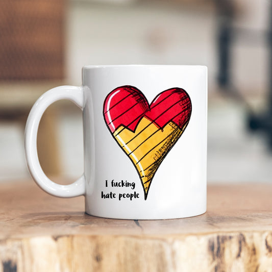 I Fucking Hate People Colourful Heart Cup, Ceramic Personalised Funny Offensive Joke Mug