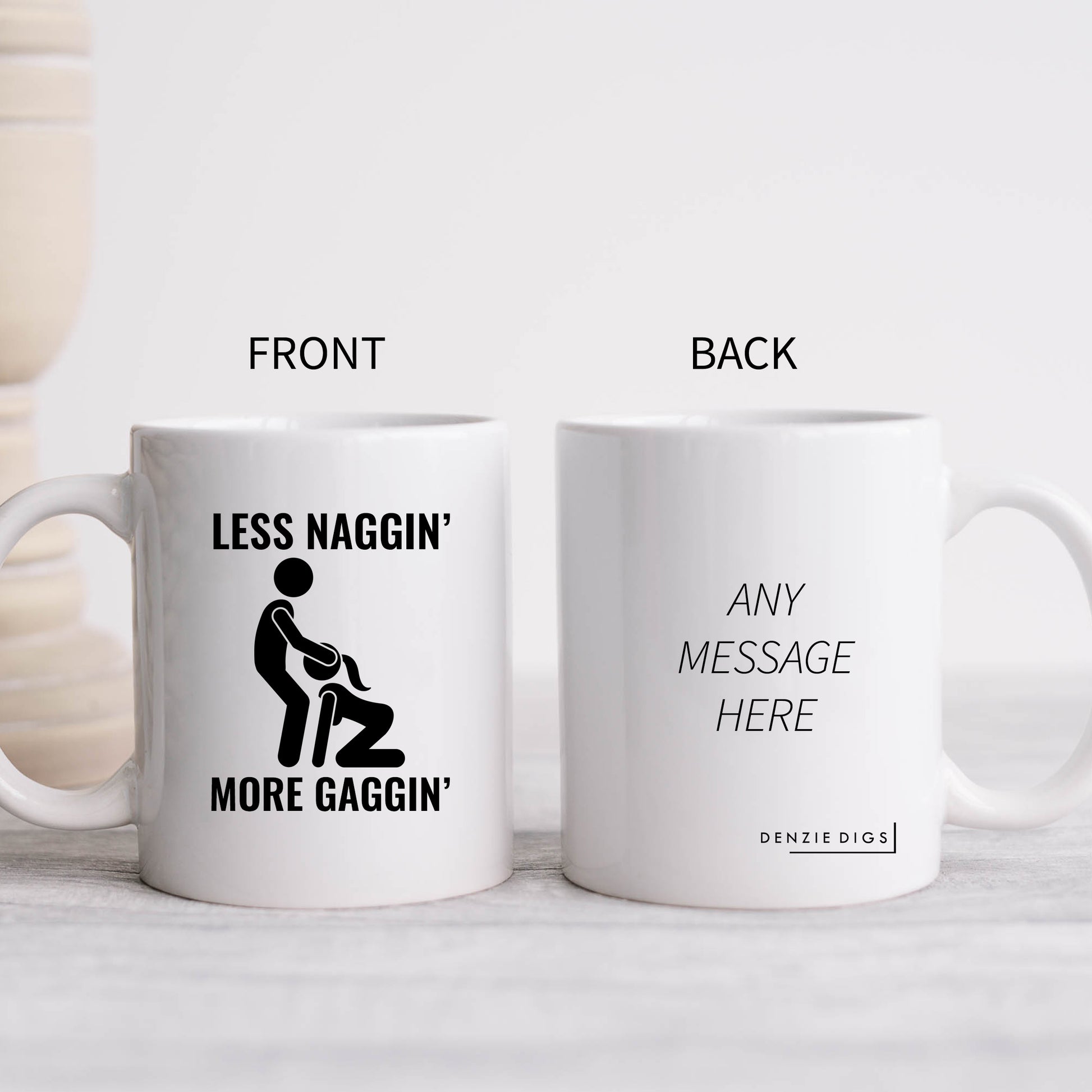 Less Naggin More Gaggin, Ceramic Personalised Funny Offensive Joke Mug